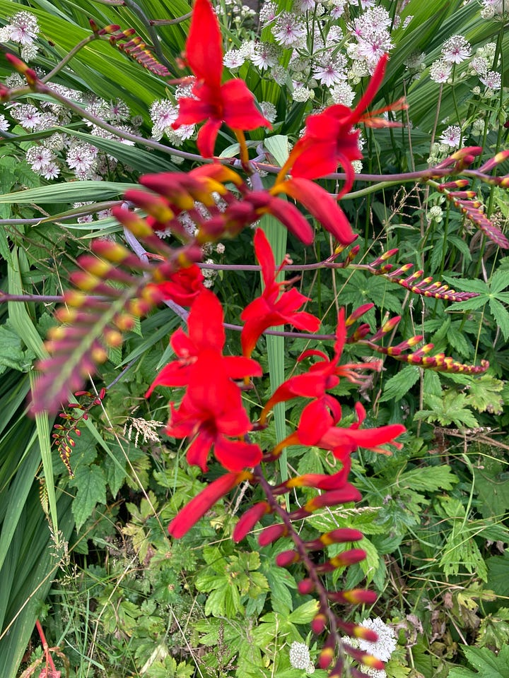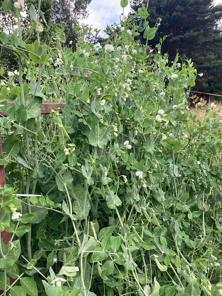 Hummingbirds delight in the bold red of Crocosmia as they do every year! Woodpecker notches up the grey spottled bark of the Rowan/Mountain Ash as they do every year and Chickadees flit in and out. The 4 year old went out all by herself with her harvest basket to pluck snap peas for the saute for dinner the other night while I wore her brother on my back; she ate all the peas in her dinner and normally she will not eat the store bought snap peas or my favorite the English peas shelled out of their pod. This is a clue for how to help humans fall in love with the earth.