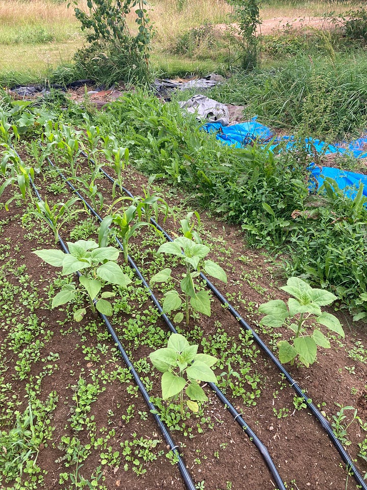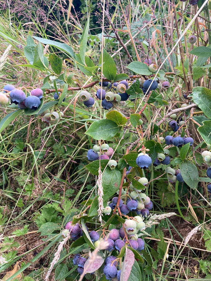 The blueberries at the edge of the yard are over taken by field grass and invasive wisteria. There is a gardener snake who hides under the blue tarp who startled me the other day and is the biggest one I’ve seen in years - its body at least an inch around!